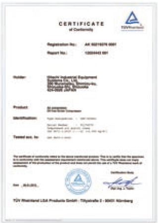 ISO8573-1:2010 CLASS 0 TÜV Certification TÜV (The Technische Überwachungs Verein), a Germany based international test service provision third-party on aspects of technical safety and quality evaluation, is globally well-reputed on its neutrality and expertise as well as its strictness in testing.