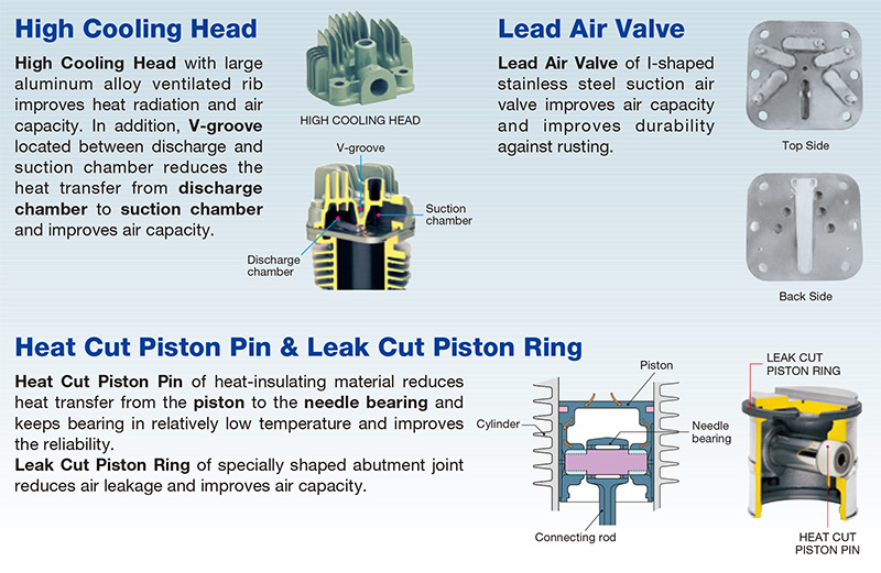 ① No need to change oil and separate the oil from drain. No need to install oil mist filter as well