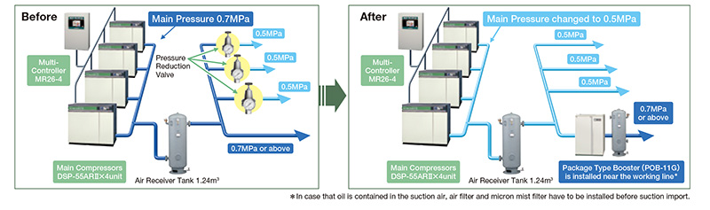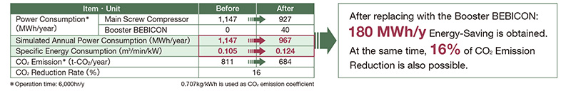 Energy-Saving Simulation after replacing pressure reduction valves with OIL FREE Booster BEBICON